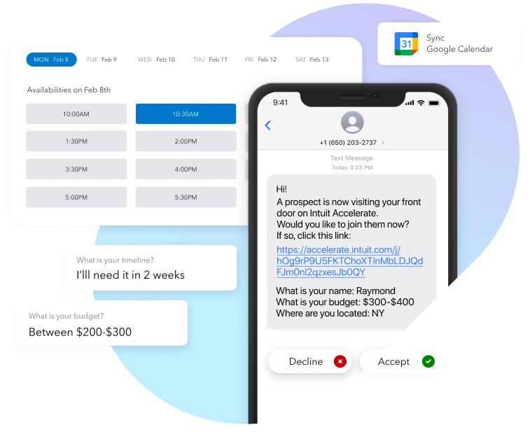 Today small businesses use a variety of products and tools to run their business, from customer intake to scheduling, collaboration and payment processing. The goal of Intuit Accelerate is to consolidate all these capabilities into a single package that makes it easy and intuitive to operate a business.