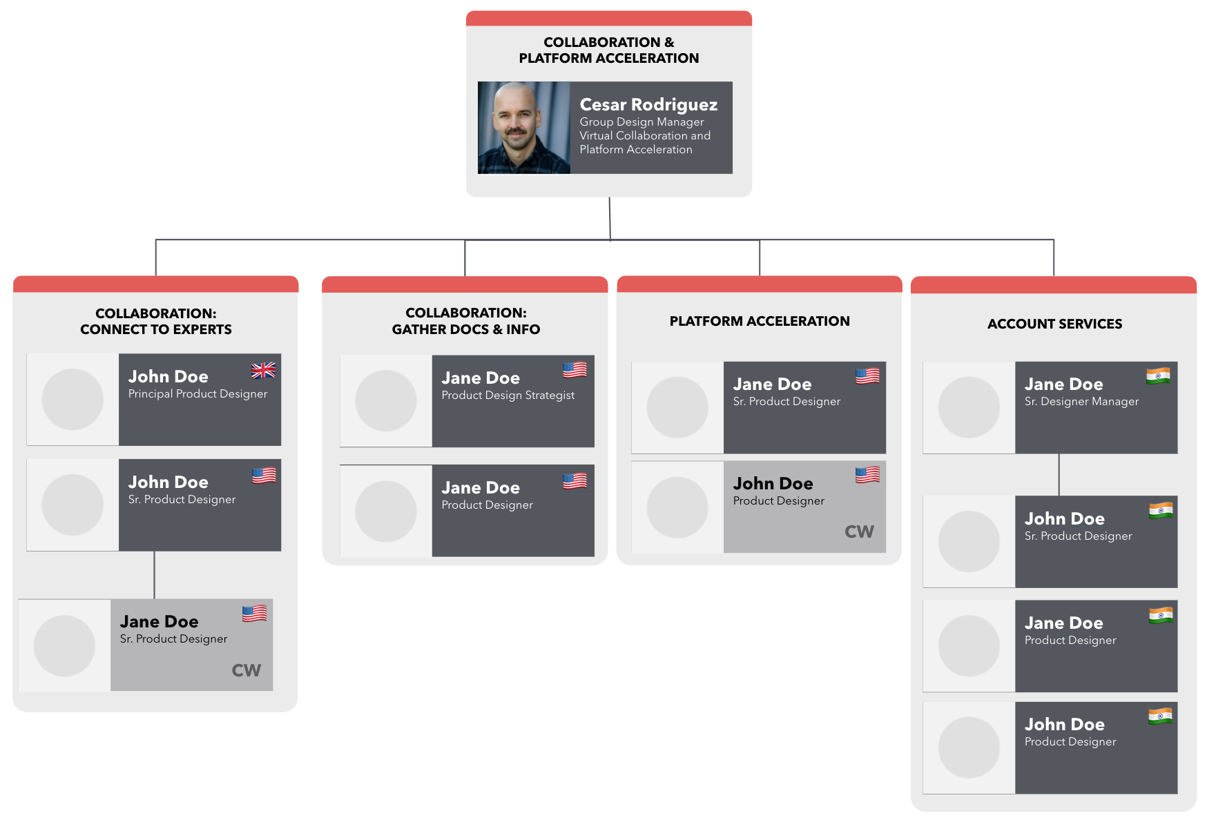 I lead a global team of product designer across seniority levels, from Product Designer 1 (IC1) all the way up to Product Design Strategist (IC4) and Sr. Manager (Manager 2).